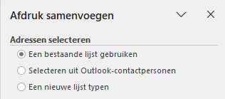 Hier kun je kiezen welke adressen je wilt afdrukken:
