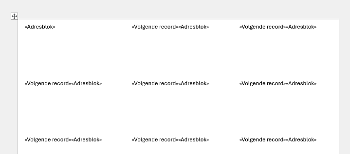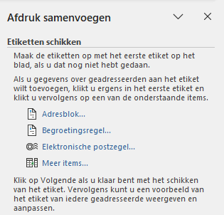 We gaan nu de etiketten (of labels) opmaken. We kiezen hiervoor de optie “Adresblok”.