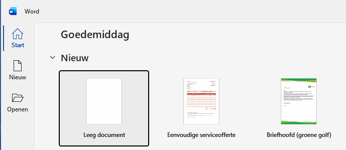 Bij Begindocument selecteren geef je aan of je een nieuwe opmaak wilt gebruiken of een bestaande.