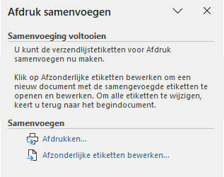 Als je de adresstickers niet meer hoeft aan te passen kun je ook direct kiezen voor “Afdrukken” (zie figuur 28).