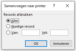 - Huidige record: drukt alleen het adres af dat je nu in beeld ziet (dit is handig voor een testafdruk).