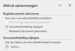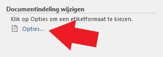 Nu geef je op wat voor etiketten je gaat gebruiken. Dat doe je door op “opties” te klikken.