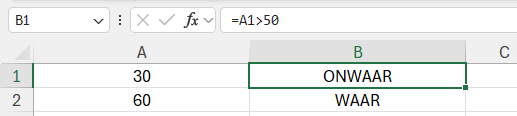 - B2>25 (de leeftijd in cel B2 is groter dan 25)